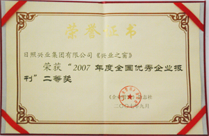 ·2007年3月,日照市企業(yè)信用評價工作委員會評審認(rèn)定興業(yè)集團(tuán)為“山東省日照市AAA級信用企業(yè)”