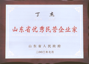 · 2003年7月,授予丁杰董事長“山東省優(yōu)秀民營企業(yè)家”榮譽(yù)稱號(hào)