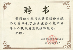 · 2003年7月,茲聘任丁杰董事長為日照市東港區(qū)人民政府高級(jí)經(jīng)濟(jì)顧問