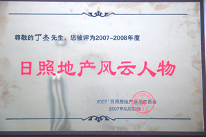 · 2007年9月30日,丁杰董事長榮獲“日照地產(chǎn)風(fēng)云人物”榮譽(yù)稱號(hào)