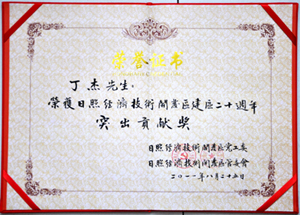 ·2011年8月25日,丁杰董事長榮獲“日照經(jīng)濟(jì)技術(shù)開發(fā)區(qū)建區(qū)20周年”突出貢獻(xiàn)獎(jiǎng)