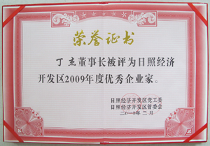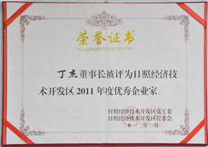 ·2012年1月,丁杰董事長被評(píng)為“日照市經(jīng)濟(jì)技術(shù)開發(fā)區(qū)優(yōu)秀企業(yè)家”榮譽(yù)稱號(hào)