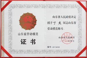·2013年4月,山東省人民政府授予丁杰董事長“山東省勞動(dòng)模范”稱號(hào)