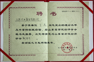 ·2012年5月,山東省宏觀經(jīng)濟(jì)學(xué)會(huì)聘請丁杰董事長為“山東省宏觀經(jīng)濟(jì)學(xué)會(huì)副會(huì)長”