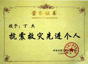 · 2008年12月,丁杰董事長榮獲“抗震救災(zāi)先進(jìn)個(gè)人”榮譽(yù)稱號(hào)