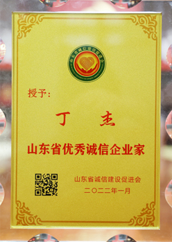 ·2022年1月,丁杰董事長獲評(píng)“山東省優(yōu)秀誠信企業(yè)家”