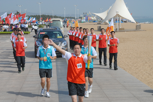 秋高氣爽,風(fēng)和日麗。9月23日上午,日照海濱彩旗飄揚(yáng),萬眾歡騰,主題為“祝福祖國,共享全運(yùn),國泰民安,傳遞和諧”的中華人民共和國第十一屆運(yùn)動(dòng)會(huì)火炬?zhèn)鬟f活動(dòng)在日照舉行。集團(tuán)董事長丁杰光榮成為全運(yùn)會(huì)的火炬手,參加了當(dāng)天全運(yùn)會(huì)火炬日照傳遞活動(dòng)。